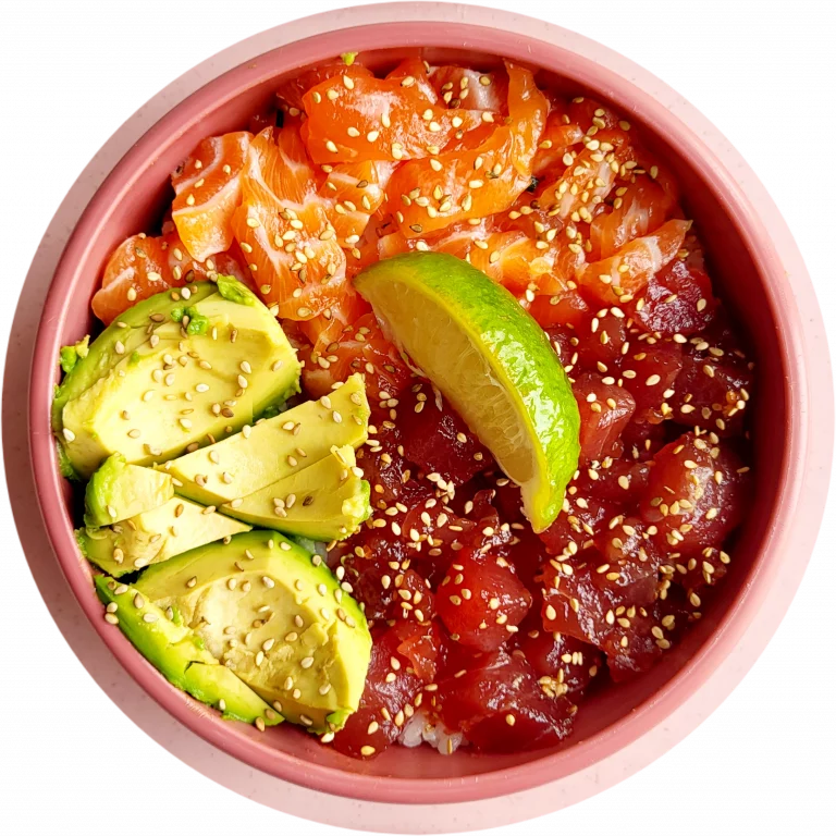 Saumon, thon mariné, avocat, sésame grillé, citron vert