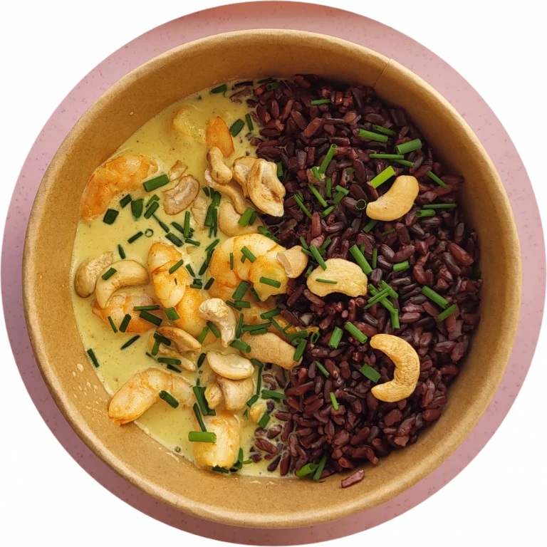 sur une base de nouilles ou riz noir complet vénéré, au choix :